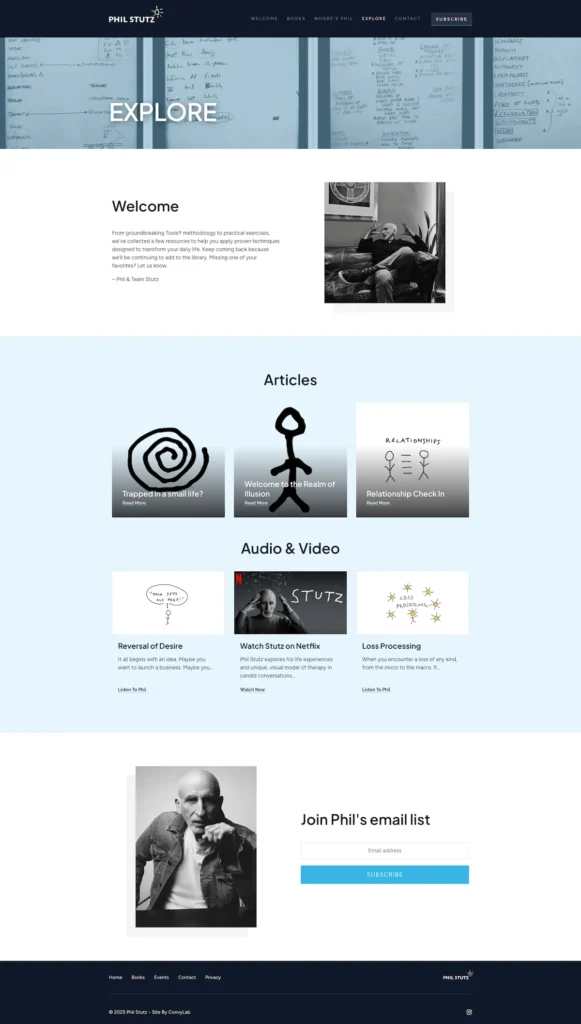 Phil had no central place for his audience. Multiple platforms were scattered, and the upcoming launch required a site that could: